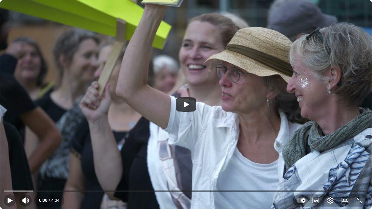 Die Zuschauer des Theaterstücks erhalten zu Beginn einen Flyer. Neben Informationen zum Stück werden dort auch eine Petition zur Rekommunalisierung der Habersaathstraße 40-48 sowie der digitale »Frauen*Salon« beworben. Das freut Janina und Manja. Ebenso, dass zum Ende des Stücks politische Forderungen mit einer Gesangseinlage des Chors der Statistik von Bernadette La Hengst vorgetragen werden, darunter zum Beispiel: »In jedem Ort ein Frauen*Salon«, »Das Deutschlandticket kostenlos«, »Öfter dekadent essen gehen« und »Kein Mensch soll ohne Zuhause sein«. »Die Forderungen haben wir selbst zusammen mit Bernadette verfasst«, sagt Manja.