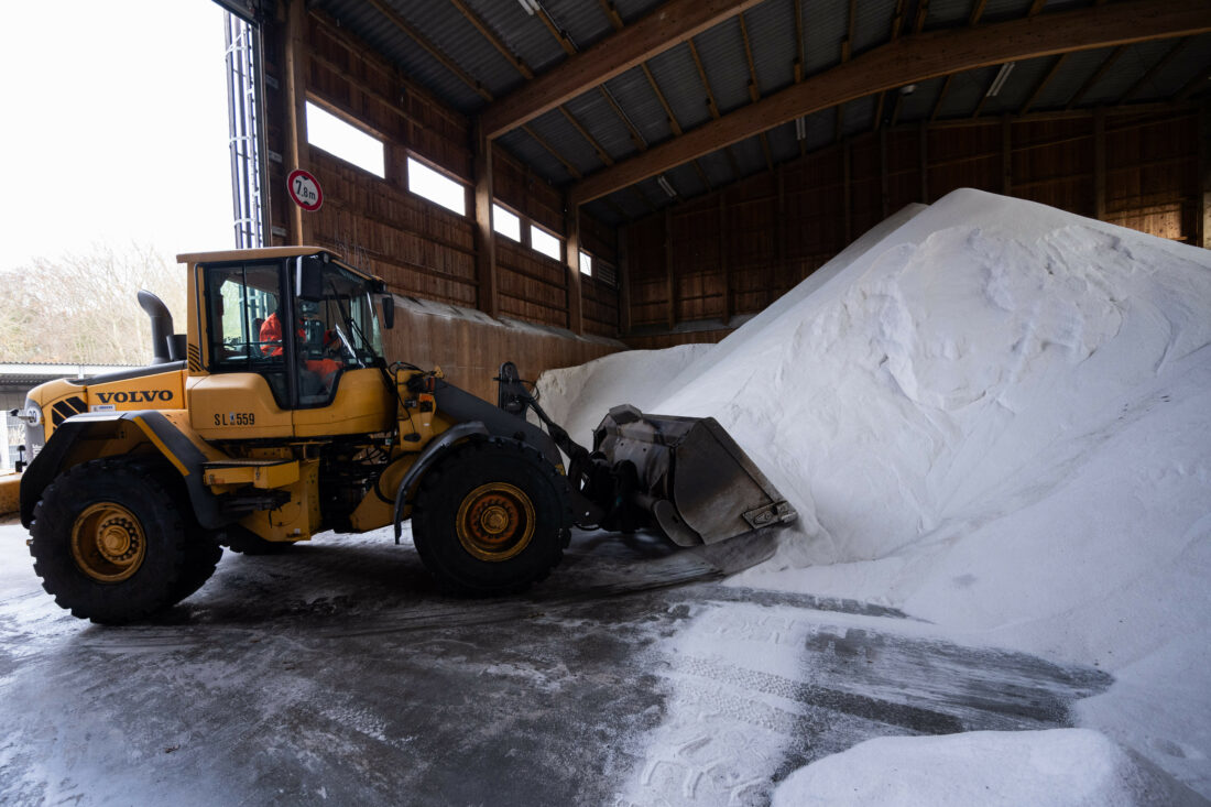 Ein Schaufellader in der Streusalzhalle der Berliner Stadtreinigung (BSR) | Foto: dpa/Christophe Gateau