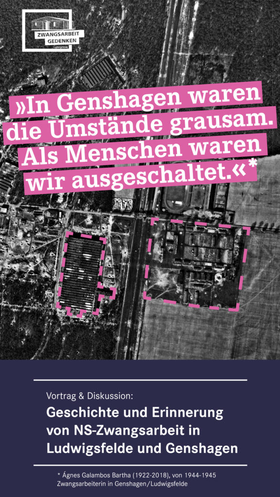Ab 1936 wurde Ludwigsfelde mit dem neu errichteten Daimler-Benz-Flugzeugmotorenwerk zum größten Luftrüstungs-Standort in Deutschland. Mit Beginn des 2. Weltkriegs wurden die bisherigen Arbeitskräfte bei Daimler-Benz zunehmend durch Zwangsarbeiter*innen aus allen Teilen Europas ersetzt. 1944 waren fast 70 Prozent der Belegschaft Ausländer*innen. Darunter Kriegsgefangene, KZ-Häftlinge sowie zivile Zwangsarbeiter*innen.