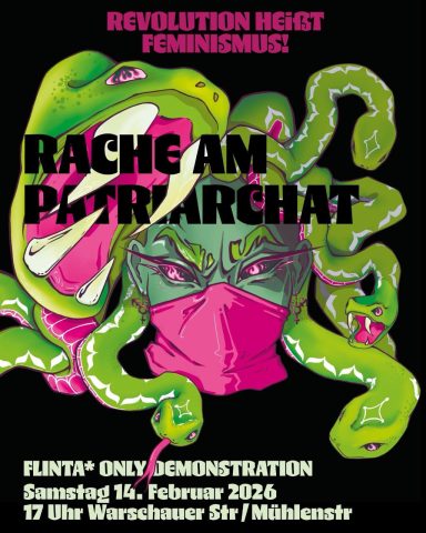 Samstag, 14. Februar um 17 Uhr Warschauer Straße/Mühlenstraße FLINTA-Demonstration!